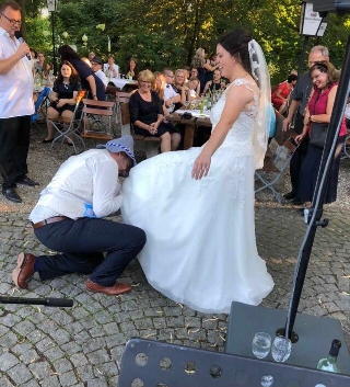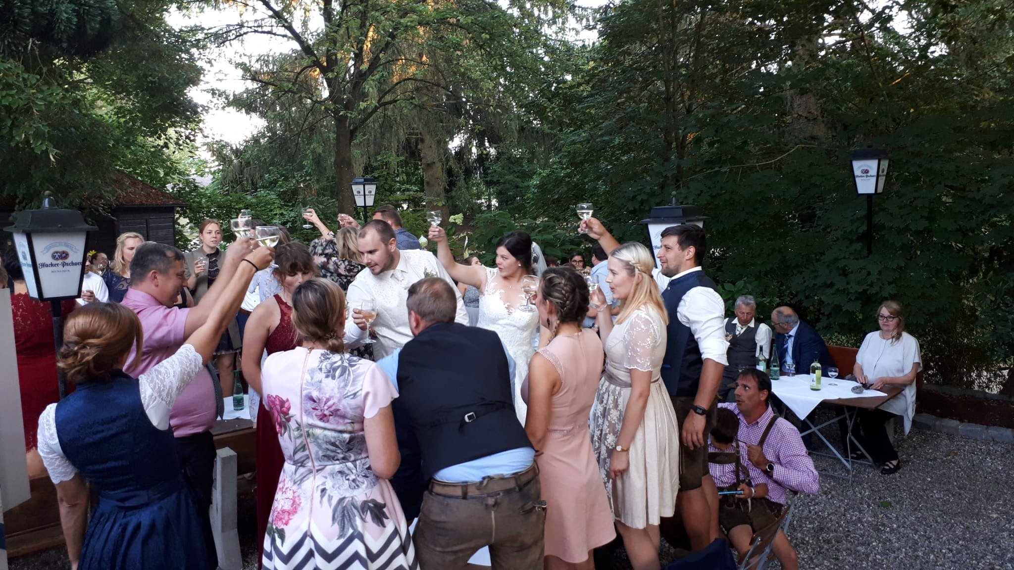 Die Stimmung beim Brautverzug war einfach mega. Vielen Dank für die ausgelassene Feier und die musikalische Gestaltung unserer Hochzeit.